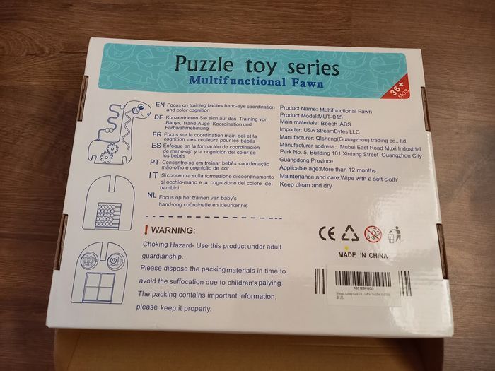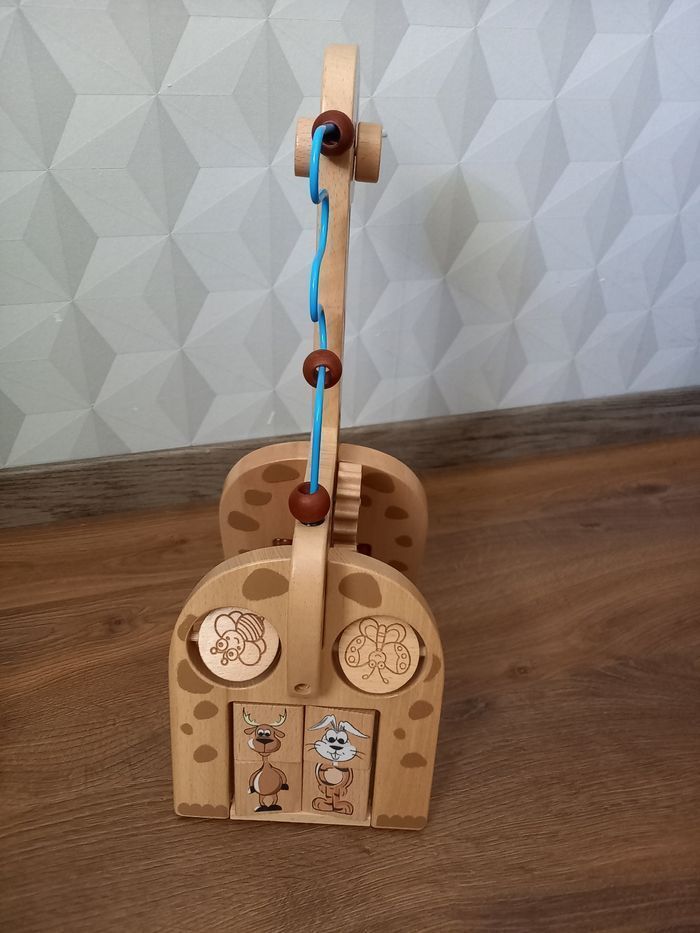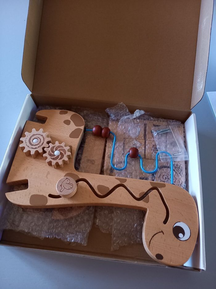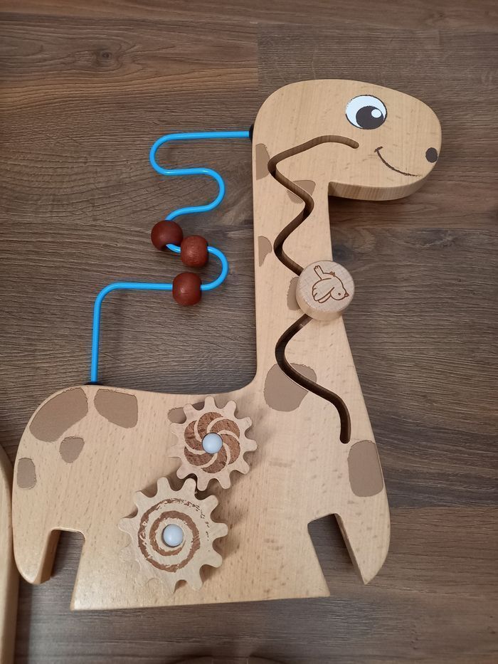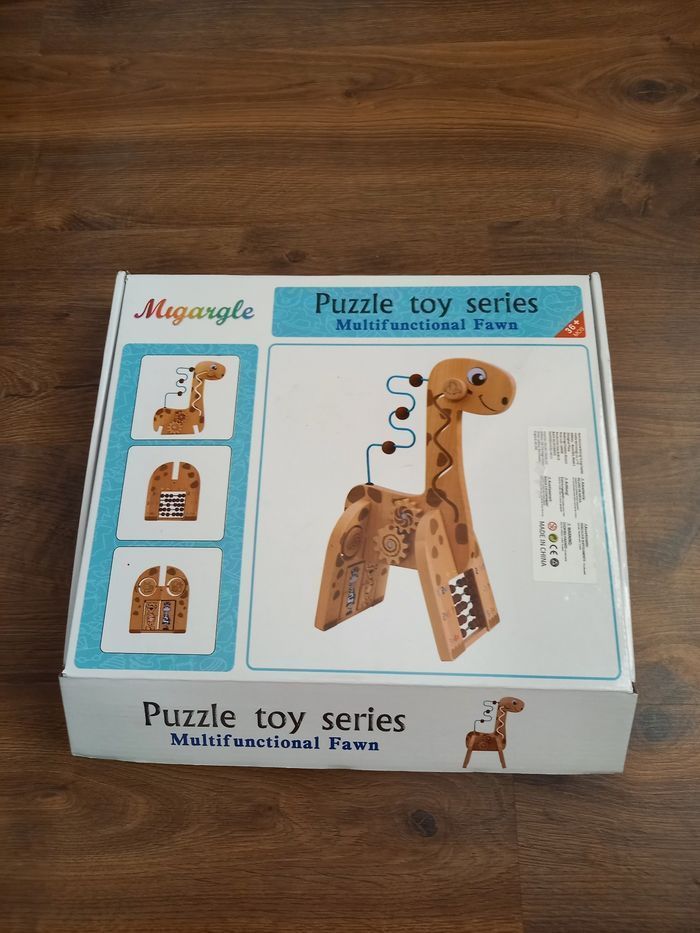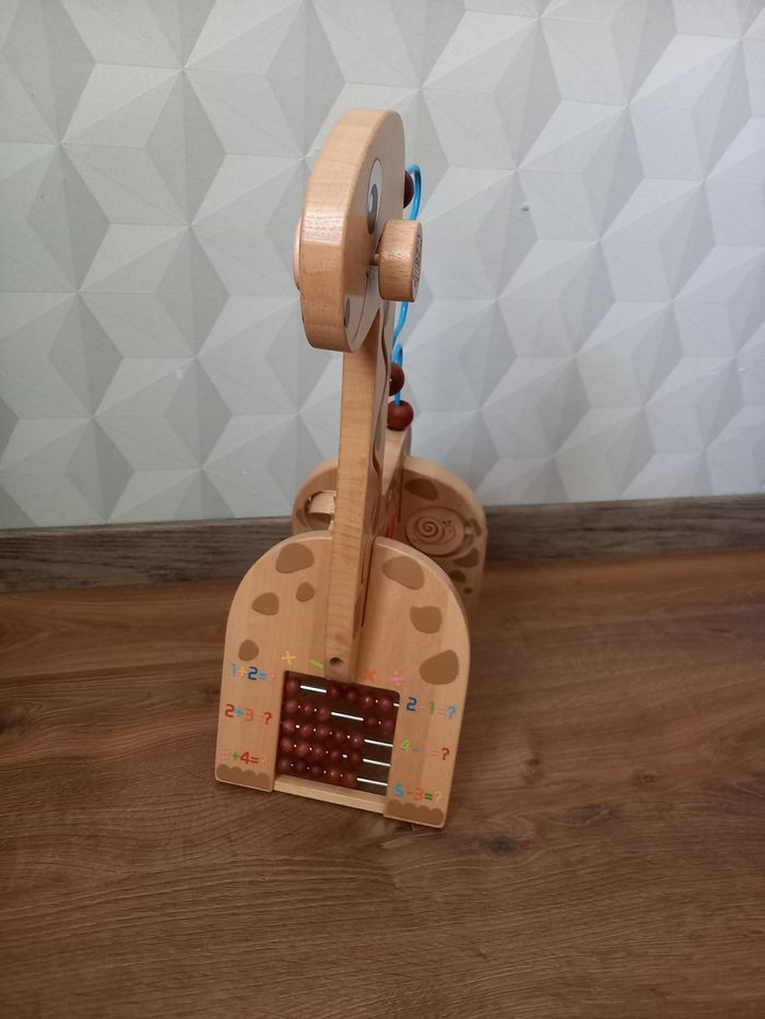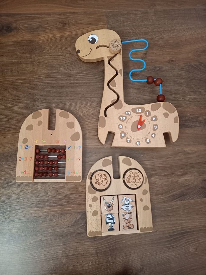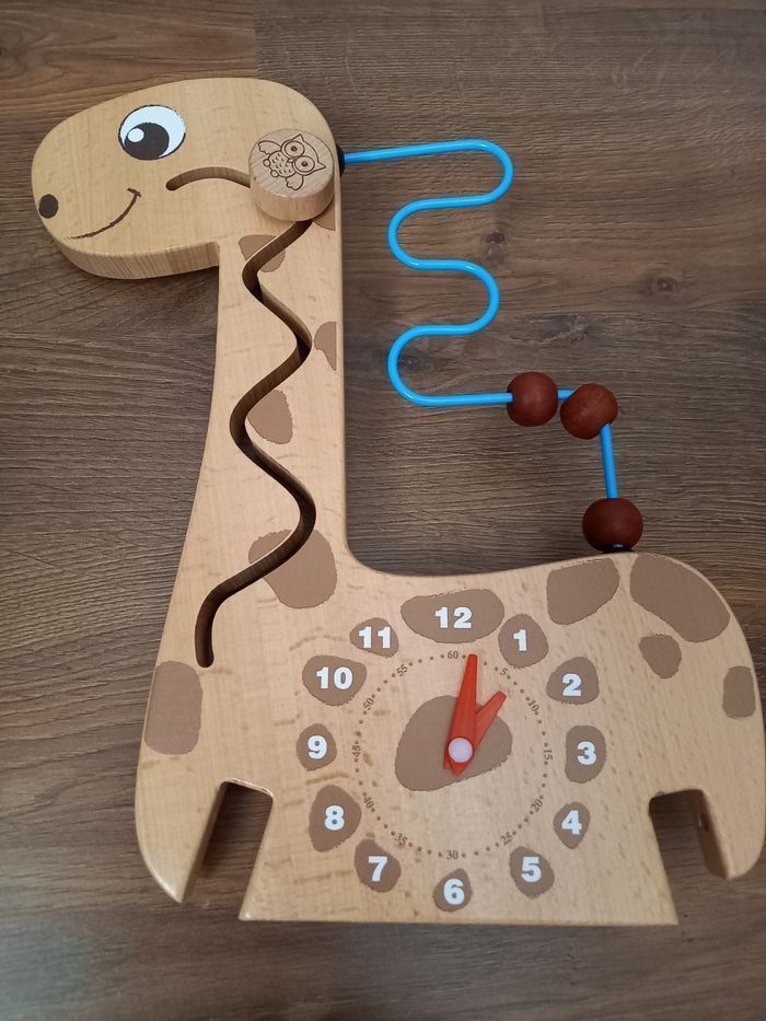 Girafe ludique en bois dans sa boîte d'origine. Composée de 3 parties à assembler Partie boulier, facettes animaux, horloge..etc A partir de 3 ans Marque Migargle État neuf.