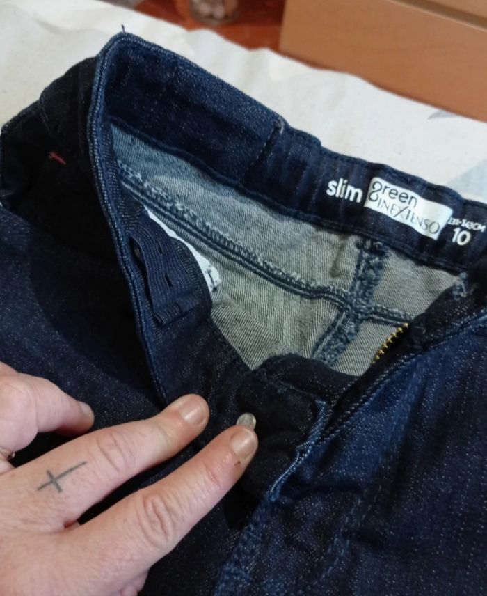 Neuf jamais porté sans étiquette Coloris brut Forme slim Réglable à la taille Marque in extenso Taille 10ans
