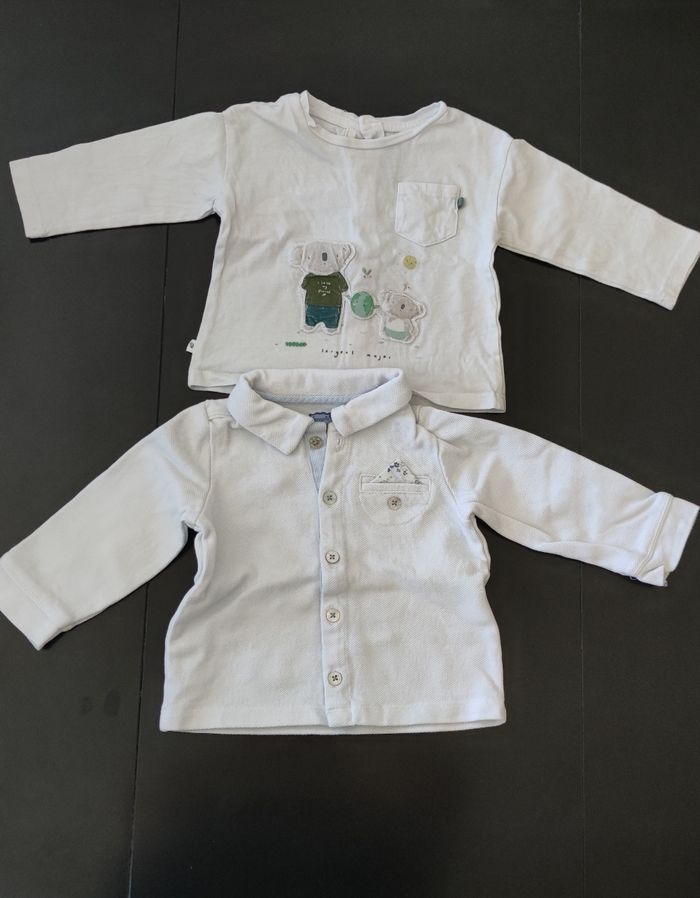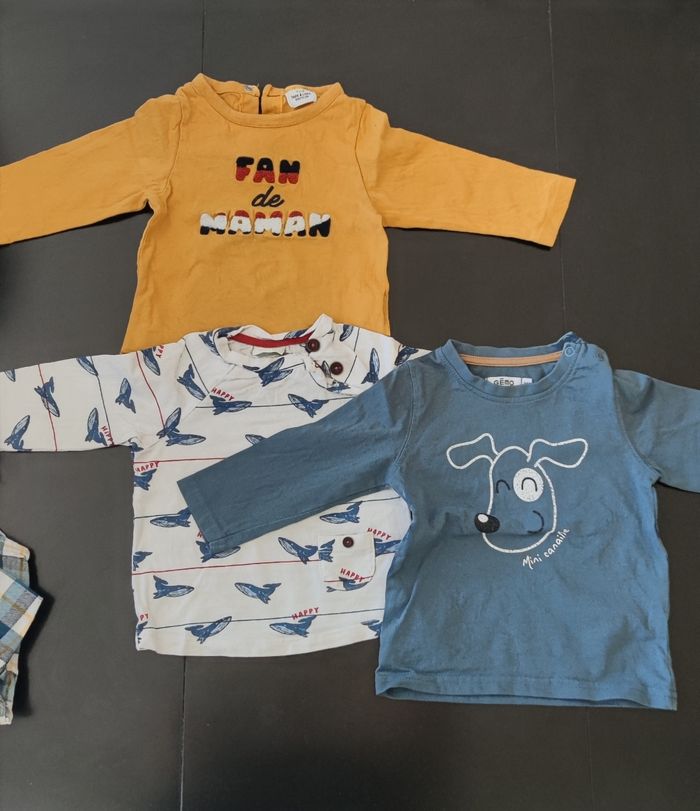 Lot de 8 tee shirts manches longues Dont 1 polo. Tout est en très bon état Marques sergent major, tape à l'œil, DPAM, gemo 9 MOIS