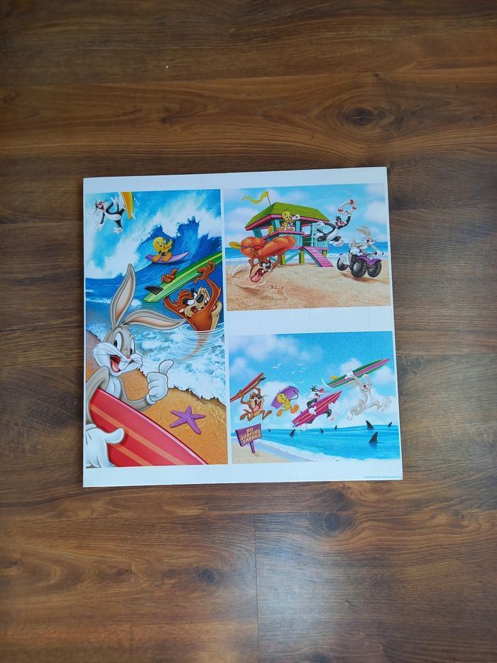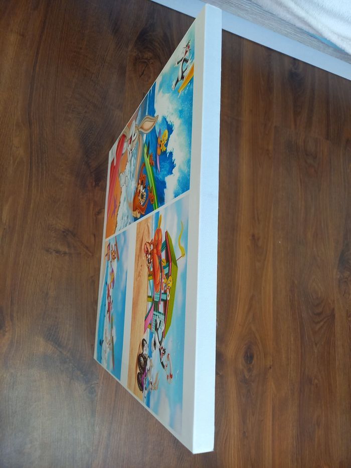 Cadre mural toile 40x40 Déco chambre enfant. Bugs Bunny, Titi et Grosminet Warner Bros Parfait état .
