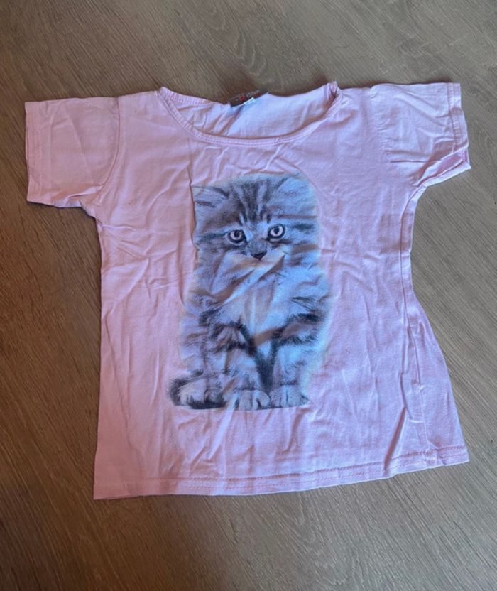 8ans T-shirt rose « blue queen » chat - photo numéro 1