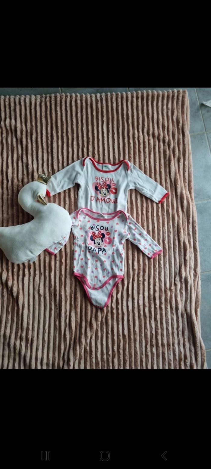 Lot de deux body disney 6 mois. Taille un peu grand. Bof