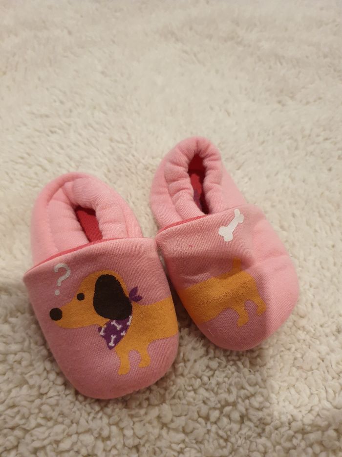 Chausson 0-6mois. Pommette, en très bon état.