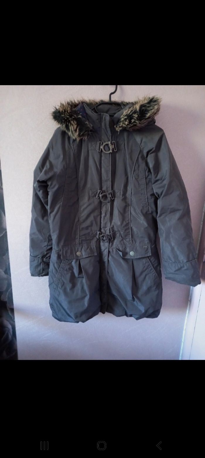 Déjà portée. Bon etat. Sans imperfection. Gris avec une fermeture. Capuche.