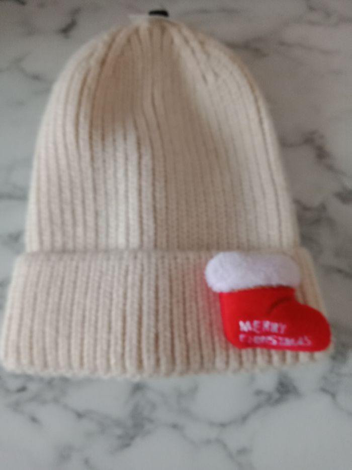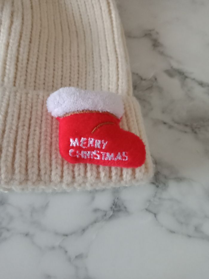 Joli bonnet de Noël avec botte rouge merry christmas,en acrylique majoritairement