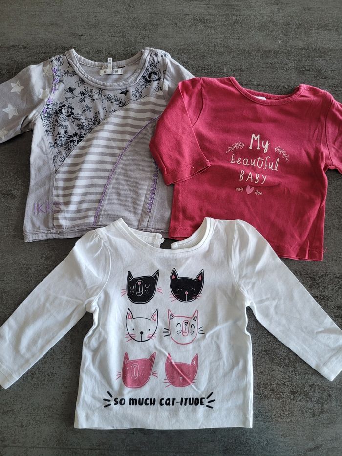 Tee-shirt manches longues - 3 mois - Différentes marques : kiabi, gemo, ikks.