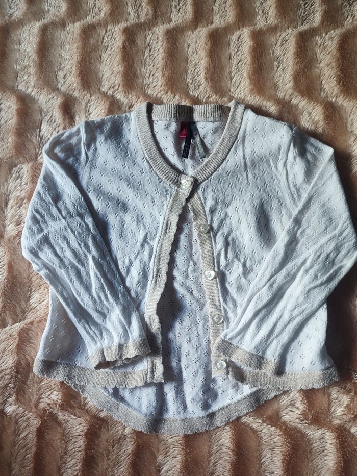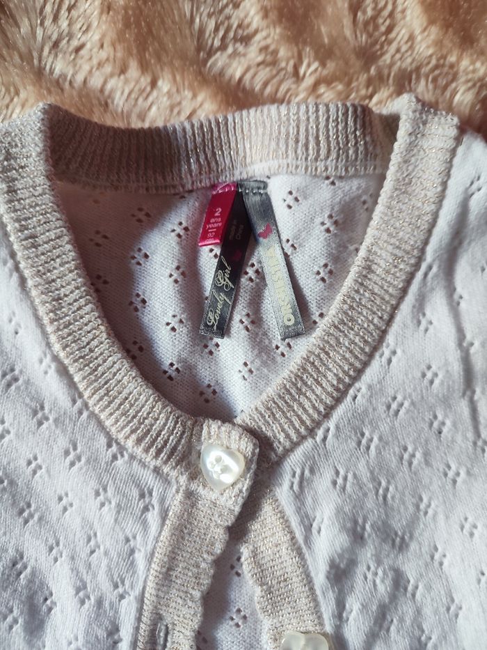 Boléro blanc avec finitions dorées et boutons en forme de coeur. 2 ans.