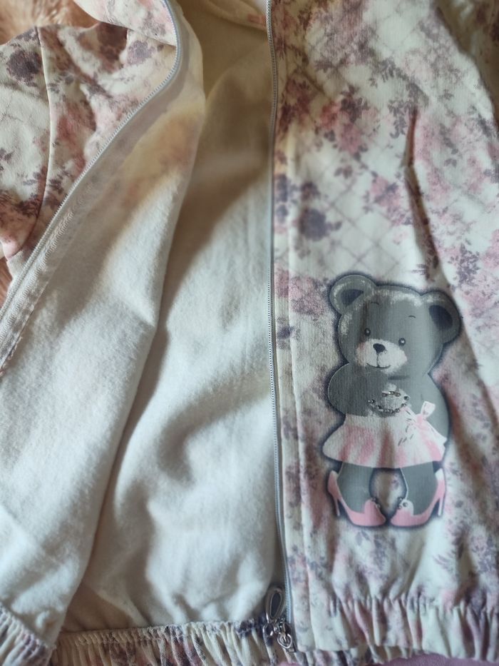 Joli ensemble chaud en coton : pantalon+pull+veste avec capuche. Très bon état