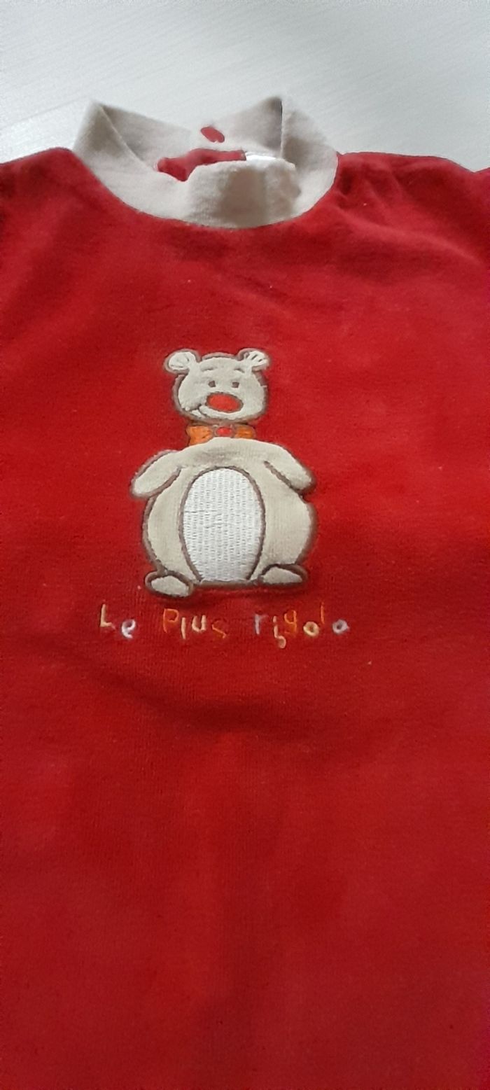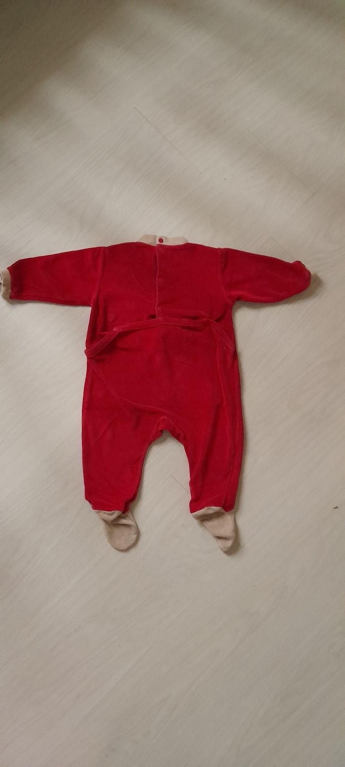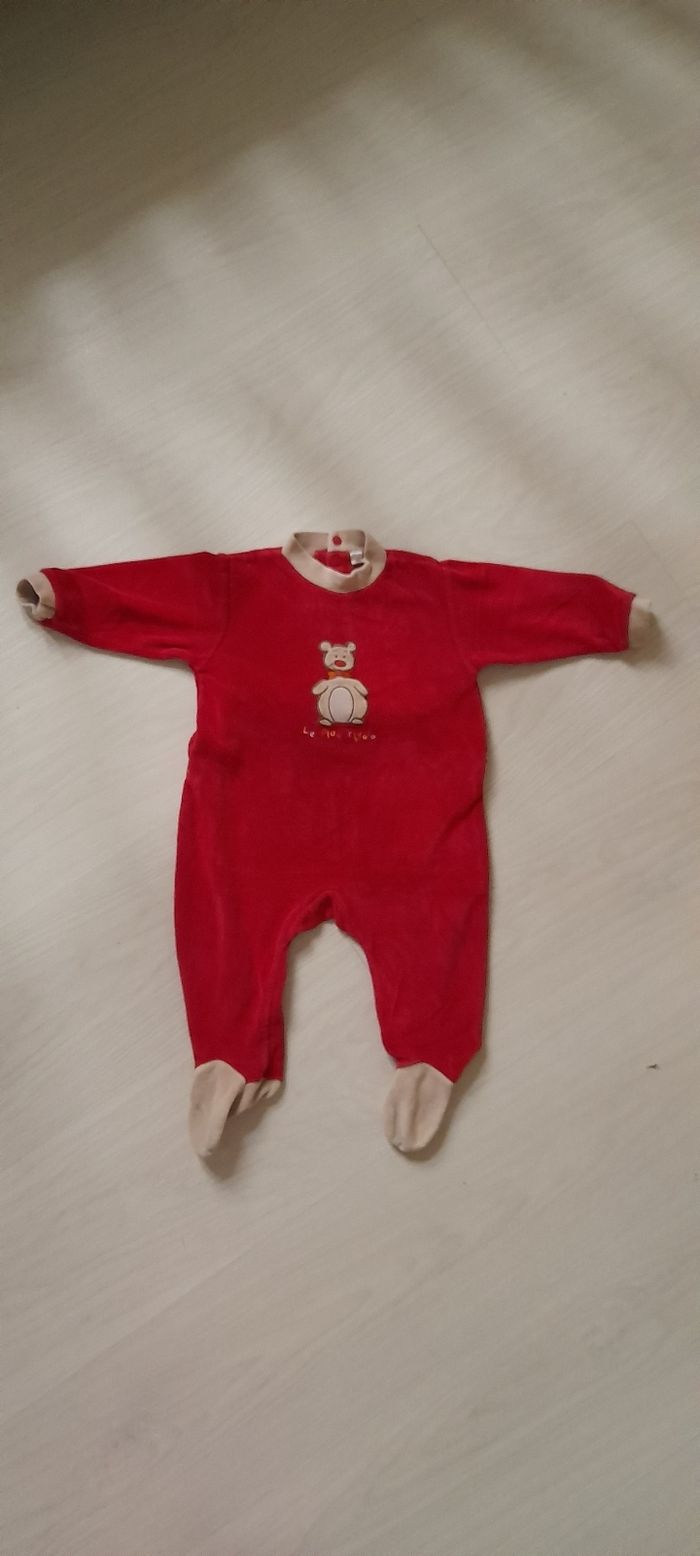 Grenouillère T 9 mois Marque ORCHESTRA Couleur rouge Attache pressions dans le dos Manches longues Motif ours devant Très très bon état
