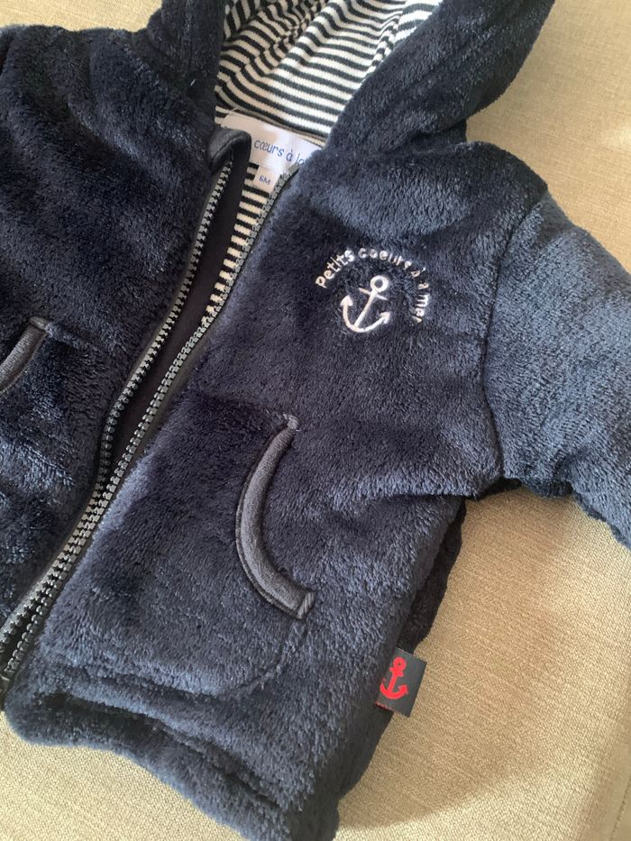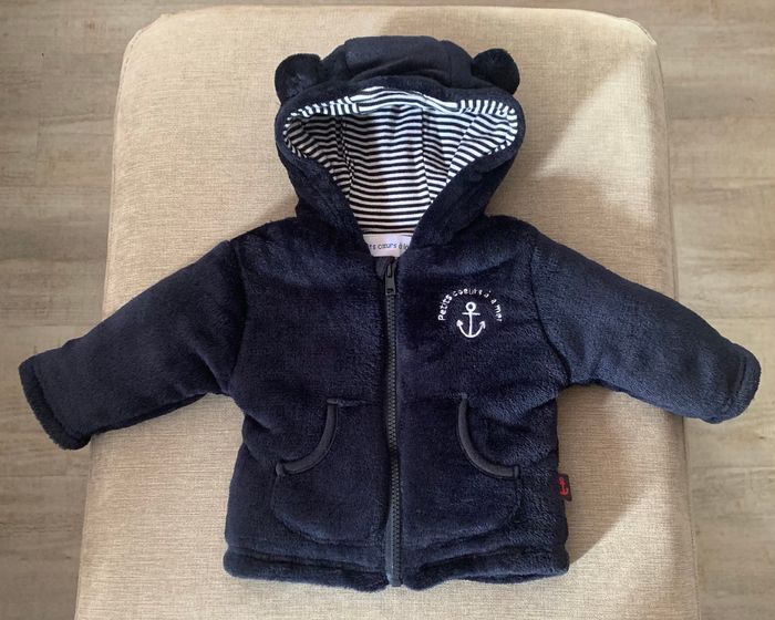 Jolie petite veste bleu marine toute douce Épaisse, elle tient chaud Petites oreilles sur la capuche De la marque petit cœur à la mer