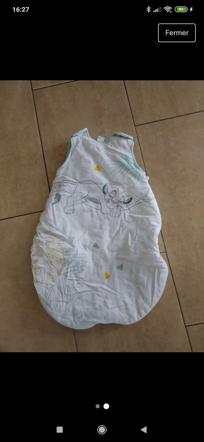 Une gigoteuse été de la marque Disney de chez kiabi et une hiver de trois kilos sept. Idéal de la naissance à 6 mois.