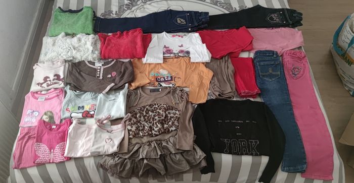 Lot 4 ans avec 3 articles en 6 ans. Toutes marques confondus. 24 articles au total. J'offre un manteau rouge très chaud avec le lot