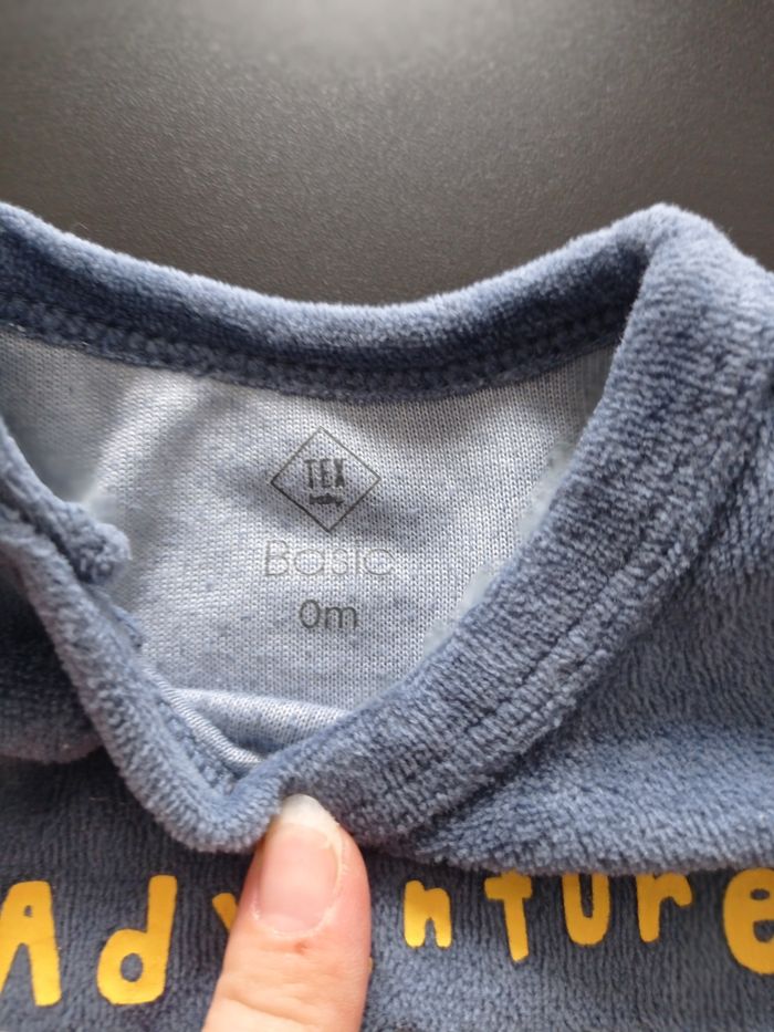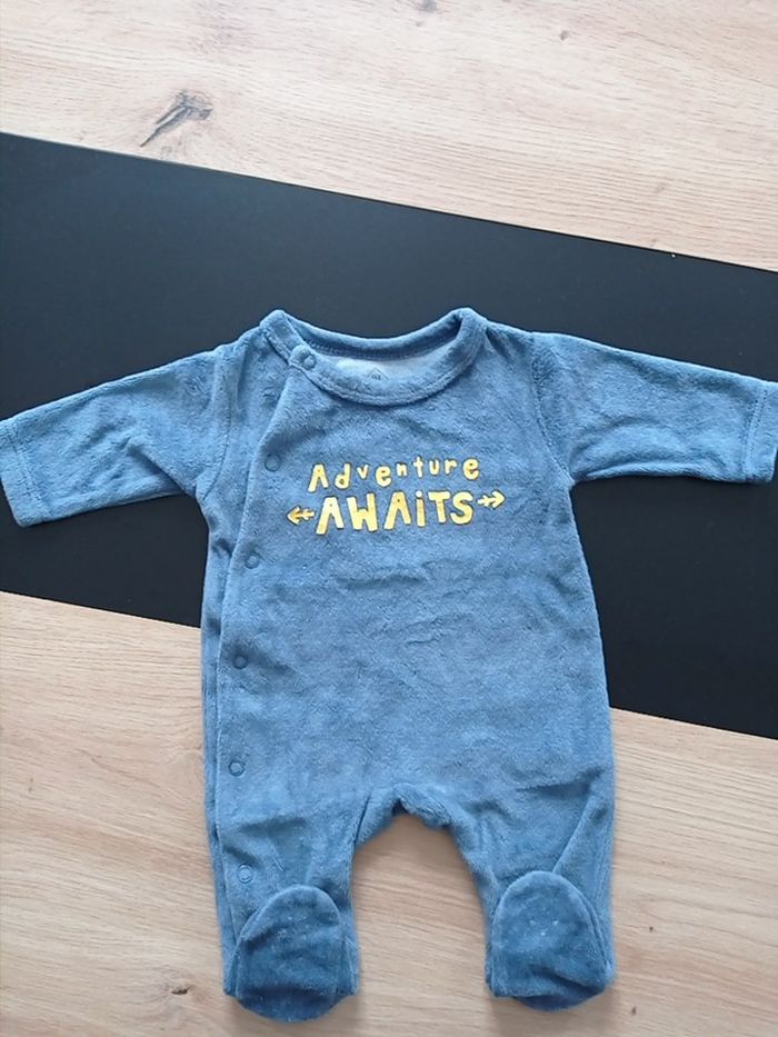 Pyjama bleu qui s'ouvre sur le devant. Très peu porté. Marque : Tex baby Taille : 0 mois