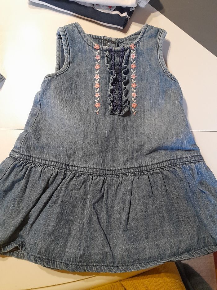 Petite robe en jeans t 6 mois bon etat idéale avec collant et haut manches longues. Et oui restons coquette même si l'hiver arrive😉