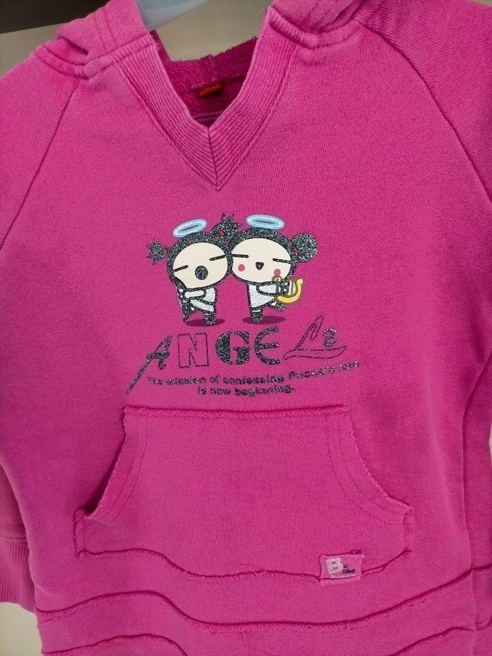 Sweat à capuche.💐💐💐 Pour fille. Long. Poche ventrale. Taille : 6 ans. Marque : PUCCA . Coloris : rose.♥️♥️ Motifs : devant. Manches longues. Très bon état. Parfait avec un legging , un jean slim, etc ... Envoi soigné de préférence via Shop 2 Shop 🌺🌺🌺🌺 : plus rapide. Voir mes autres annonces. ( Pull, gilet, sweat, cardigan, sport, capuche , etc...).