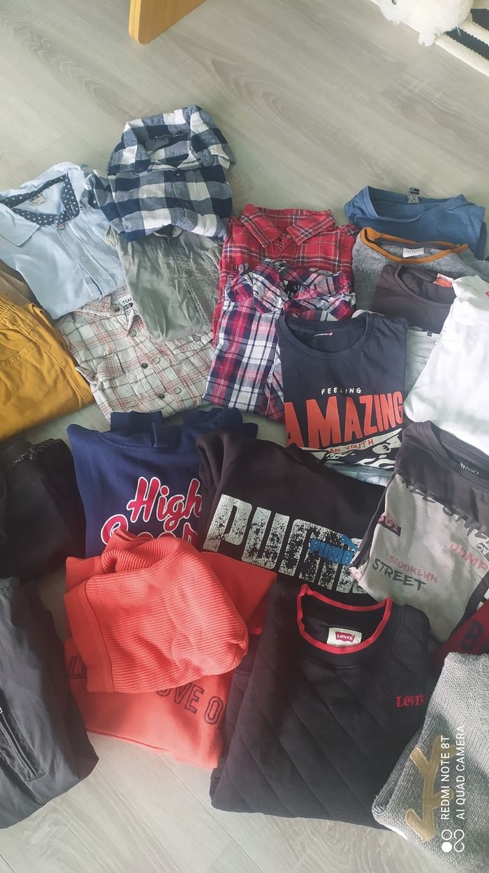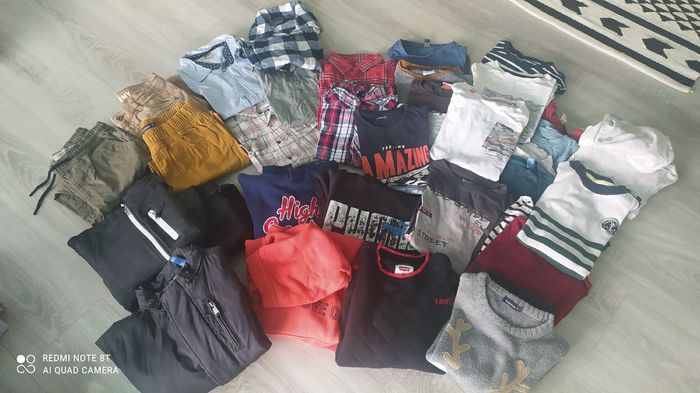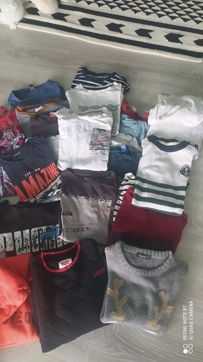 4 Sweats 4 Pulls 6 Chemises 3 Pantalons 1 Ensemble de survêtement sur le pantalon couture jambe droite 1 Blouson demi saison 13 Teeshirts à manches longues