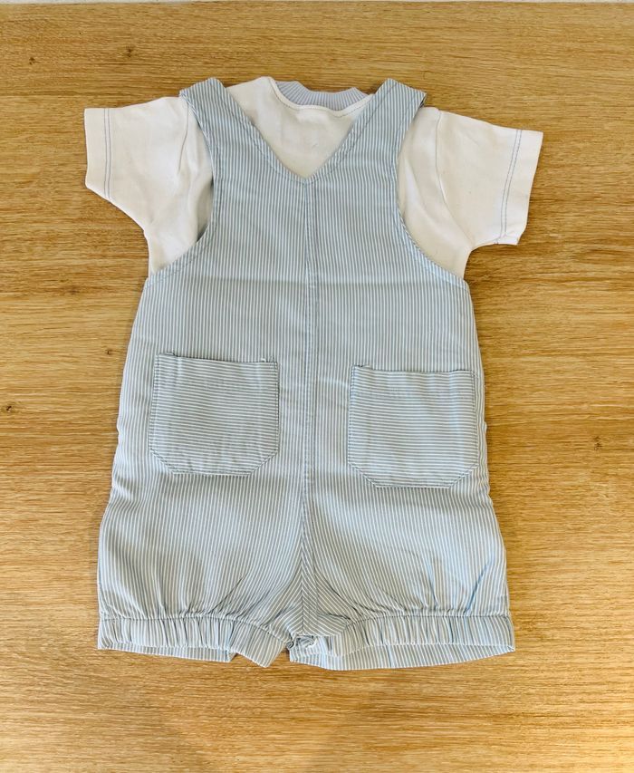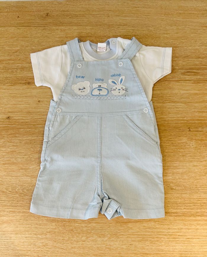 Ensemble salopette + T-shirt bleu claire Taille 3 mois Porté 2 fois Taille : 3 mois