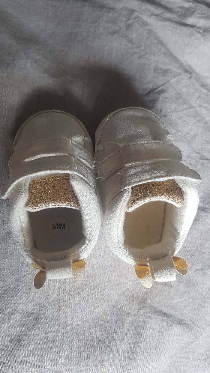 Basket bébé 3-6 mois mais taille petit. Portée une fois, acheté déjà d'occasion à la base