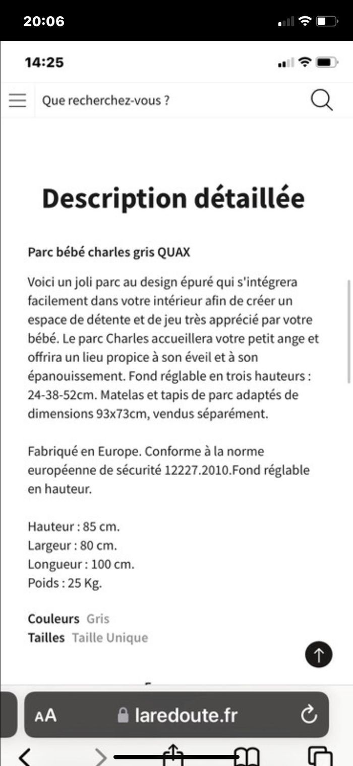 A vendre beau parc gris avec deux hauteurs , résistant , un peu abîmé (voir photo) Description dans les photos suivantes