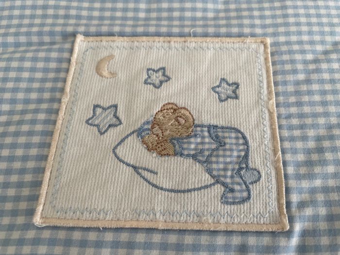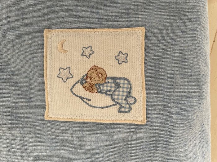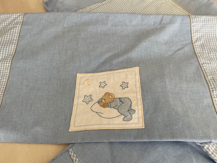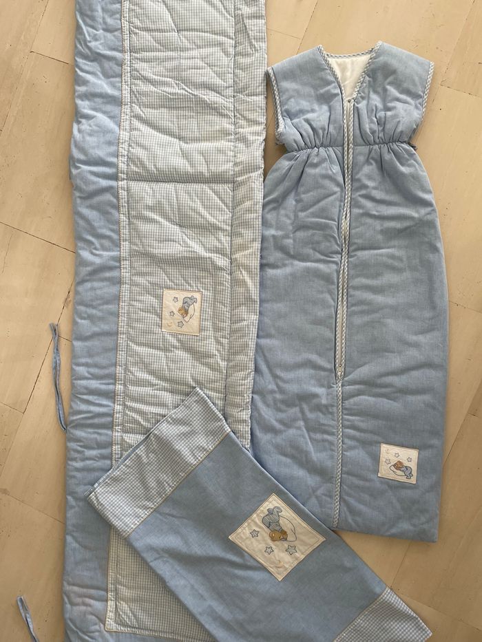 ensemble Natalys composé : d’une gigoteuse 100 cm de long d’un tour de lit d’une housse de couette 110x70 tres bon état ( le tour de lit à une légère décoloration sur photo)