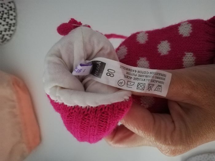 Gants hiver rose à pois blancs Hema Très bon état 18-24 mois