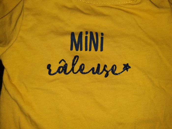 3 mois Peu porté , Très bon état Écriture noir + noir pailleté (voir photo) Marque Vertbaudet