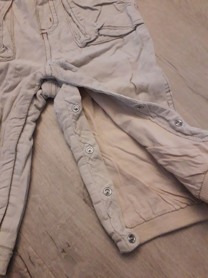Salopette chaude en velour. Boutons de pressions entre les jambes. Lavé avec lessive pour bébé. Maison non fumeur