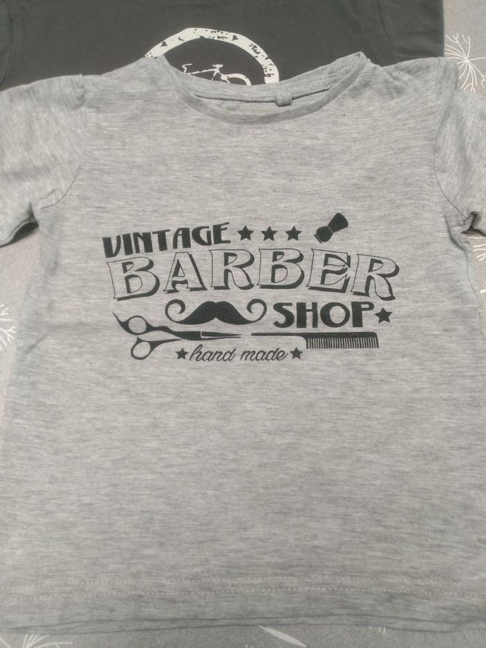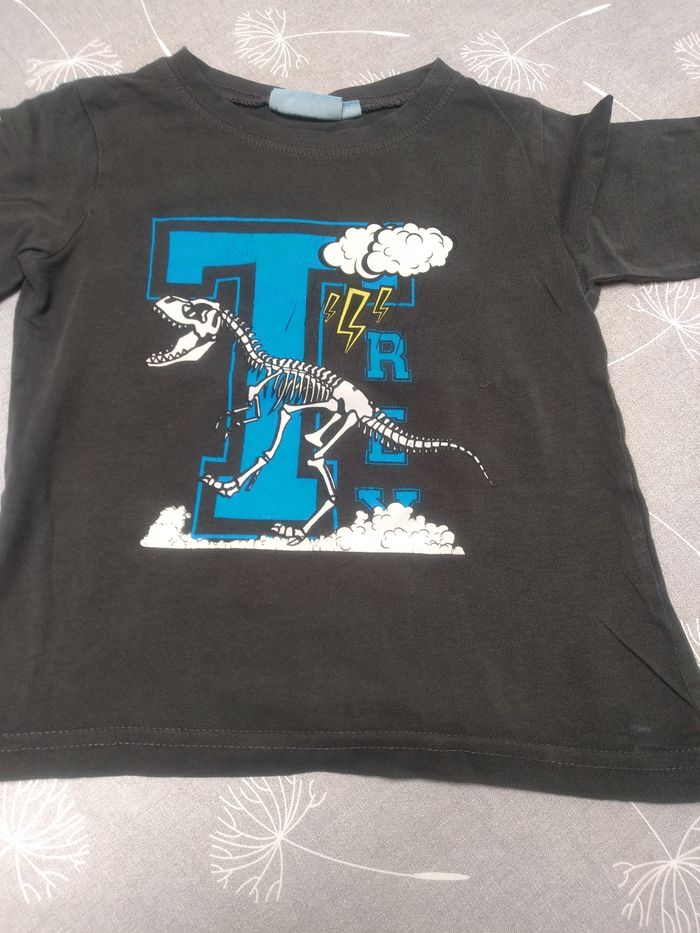 Lot de 3 t-shirts manches longues : 1 t-shirt gris Barbier Même pas peur 98 1 t-shirt gris vélo Verbaudet 94 3 ans 1 t-shirt dinosaure NKY 94 3 ans, petit défaut voir photo. Bon état. Bac 8