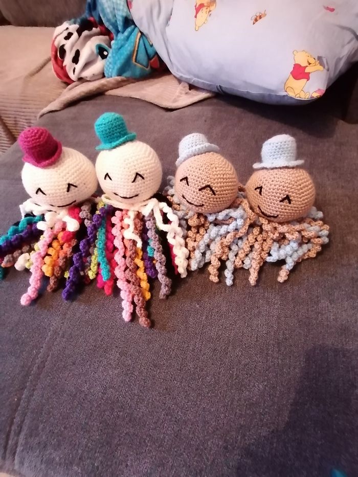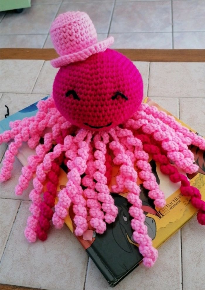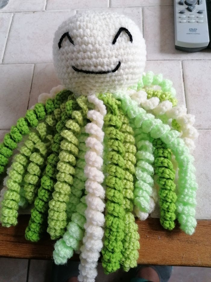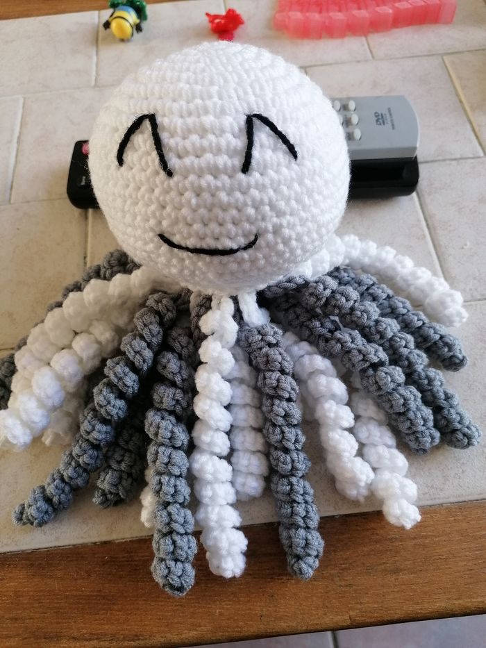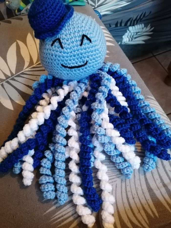 Doudou pieuvre Douce moelleuse er réconfortante pour votre bébé ou enfant plus grand. Les tentacules rappellent le cordon ombilical de sa maman. Passe en machine à 30 en délicat et de préférence dans un filet ou une taie d'oreiller. Pas de sèche linge. Autre coloris disponible