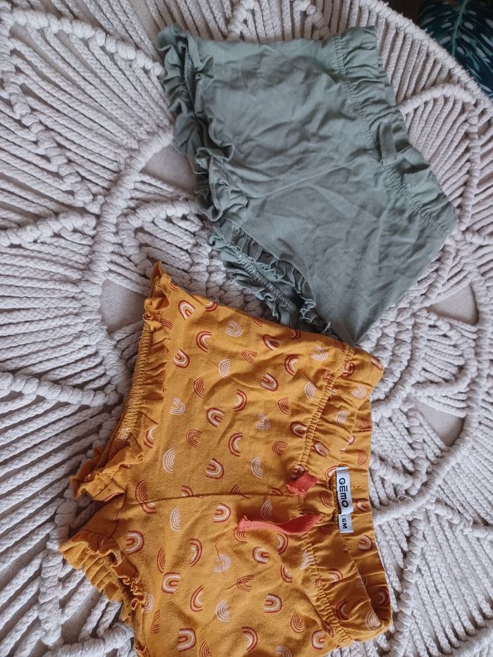 Lot de 2 shorts Gemo taille 6 mois impeccable, un vert d'eau et l'autre moutarde avec motif arc en ciel sho