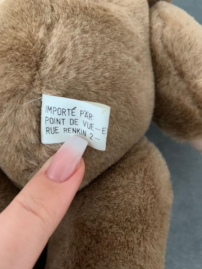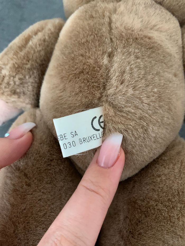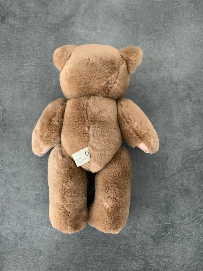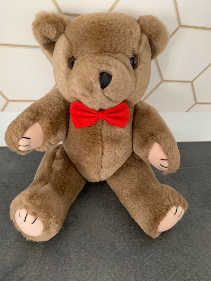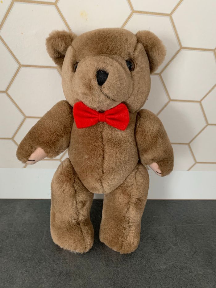 Teddy Bear Vintage - Excellent état - Marron et rouge - Noeud papillon - Bras et jambes amovibles - 30cm - Fabrication Belge - Ours en peluche