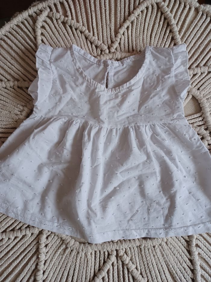 Blouse à volant bébé taille 3/mois blanche impeccable avec bouton à l'arrière