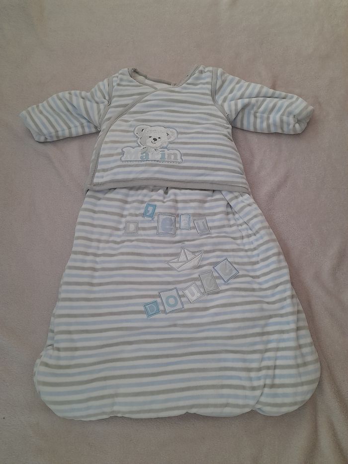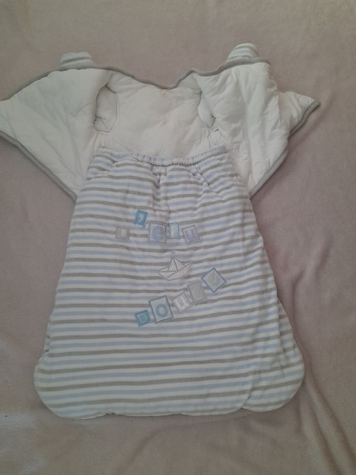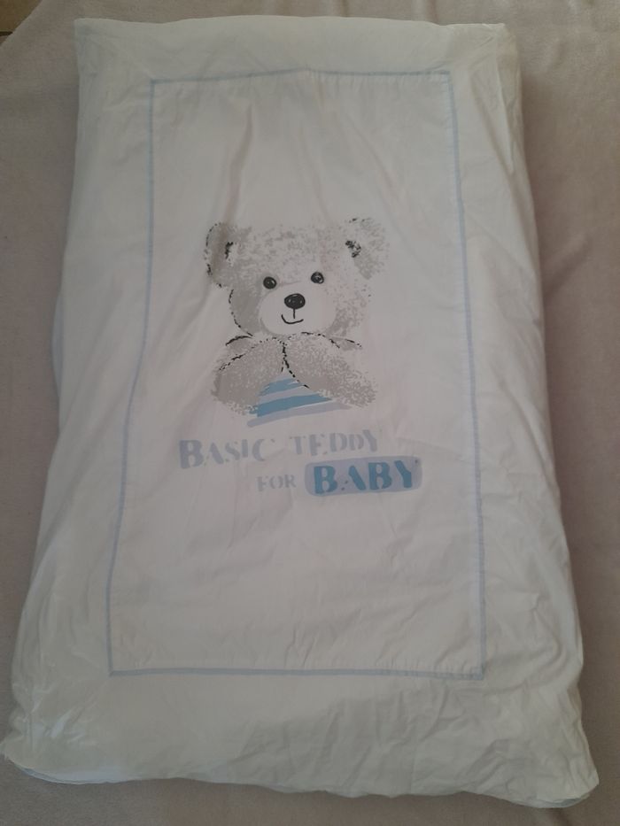 Ensemble lit bébé de marque orchestra Le lot ce compose de 4 articles Le dessus de lit Le tour de lit La gigoteuse Et le protège matelas à langer En parfaite état