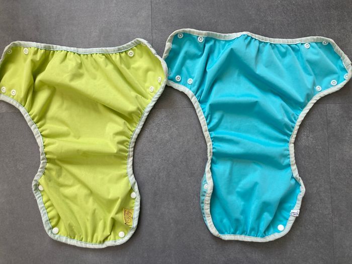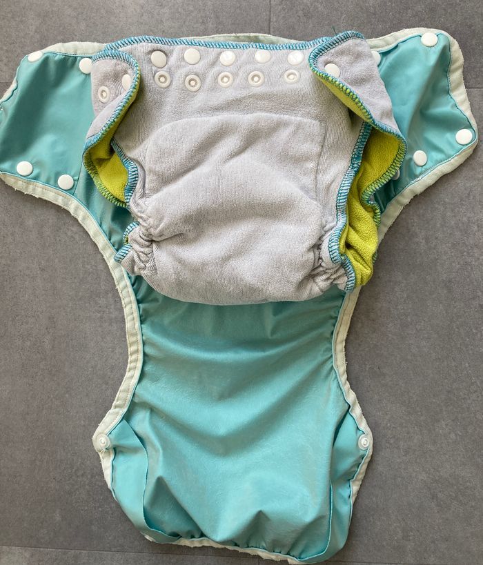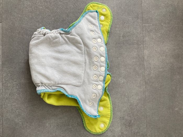 Couches classiques Bébés lutins avec surcouche en PUL, taille L, excellent état et deux TE1 à poche Mama Koala en excellent état, occasion. 8€ la couche classique 5€ la surcouche 6€ la Mama Koala Réservées à Alexandra. Bébés Lutins : chaque couche a été cousue avec l’insert en viscose de bambou à l’intérieur. La couche elle-même est extrêmement absorbante ! Elle est évolutive avec des pressions intérieures. Si elles sont snappees, c’est la taille M et si elles sont desnappees, c’est la taille L. Surcouche en PUL en excellent état. Achetées neuves. Fabriquées à Thiers en Auvergne, toutes douces et confortables ! Mama Koala : exclusivités, gros roulement sur 180 couches. Routine en 2 cycles : lavage à 30 degrés, 30 min puis lavage à 60 degrés pendant 2,5h. Lessive Rainett Aloe Vera et séchage à l’air libre. Décrassées au percabonate.
