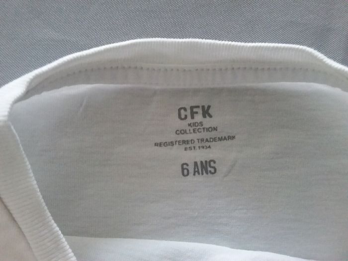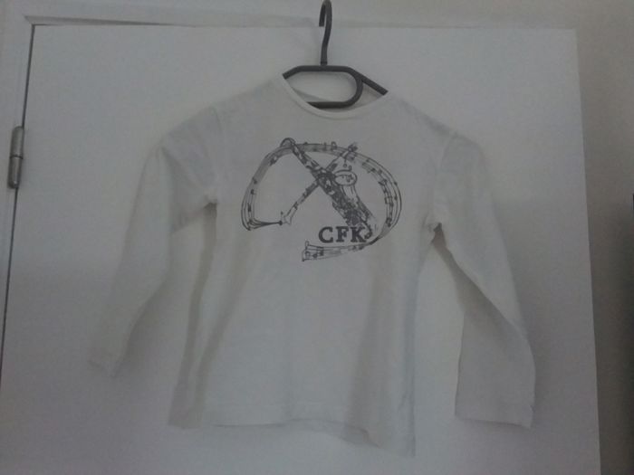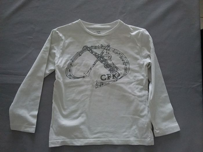 T-shirt manches longues garçon 100 % coton Couleur blanc Inscription sur le devant Taille 6 ans Article en excellent état Prix 1 €
