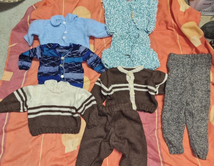 3 gilets avec boutons 2 gilets sans manches 1 ensemble pull pantalon 1 pantalon 6 mois