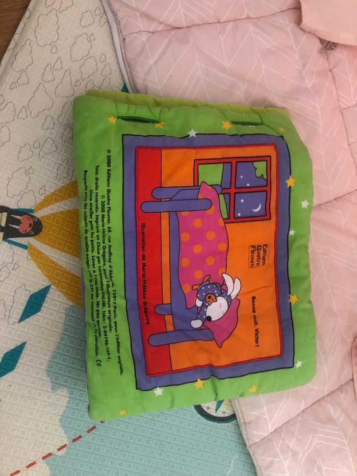 Livre oreiller avec 5 pages « la journée de Victor » 24x32 cm en très bon état