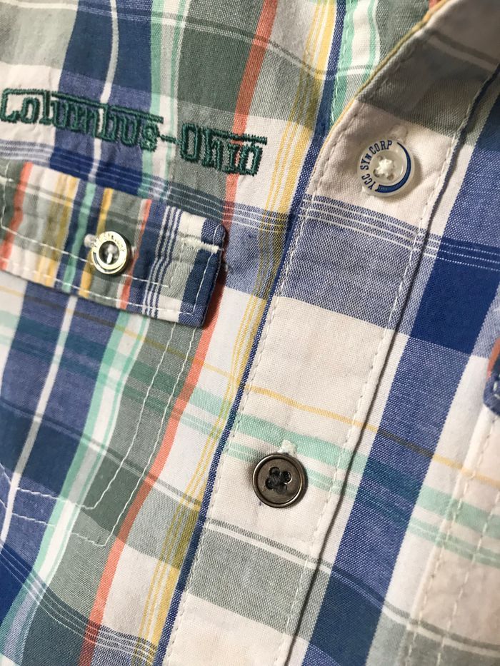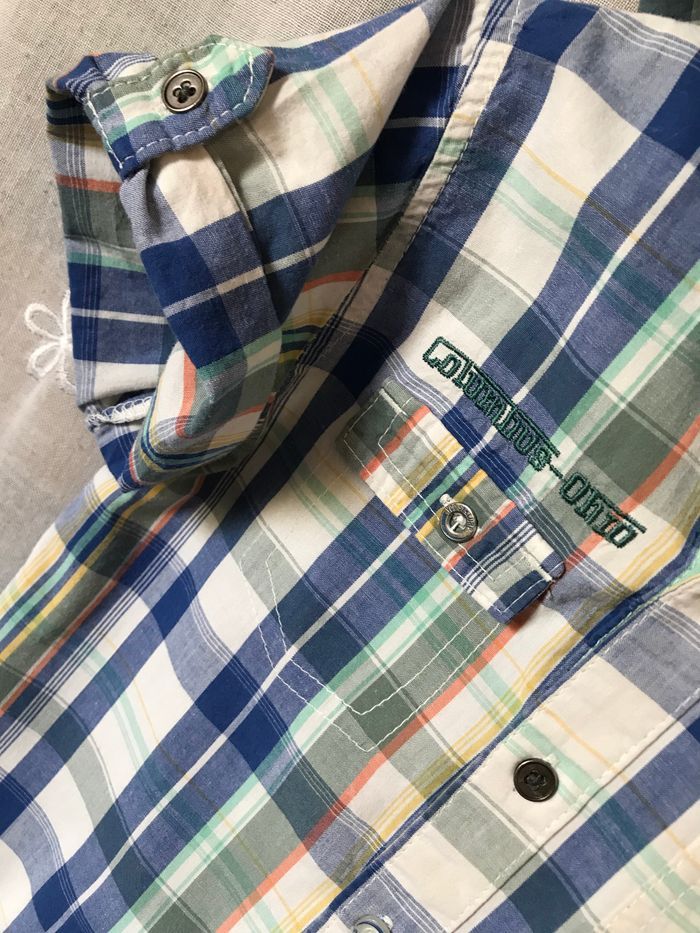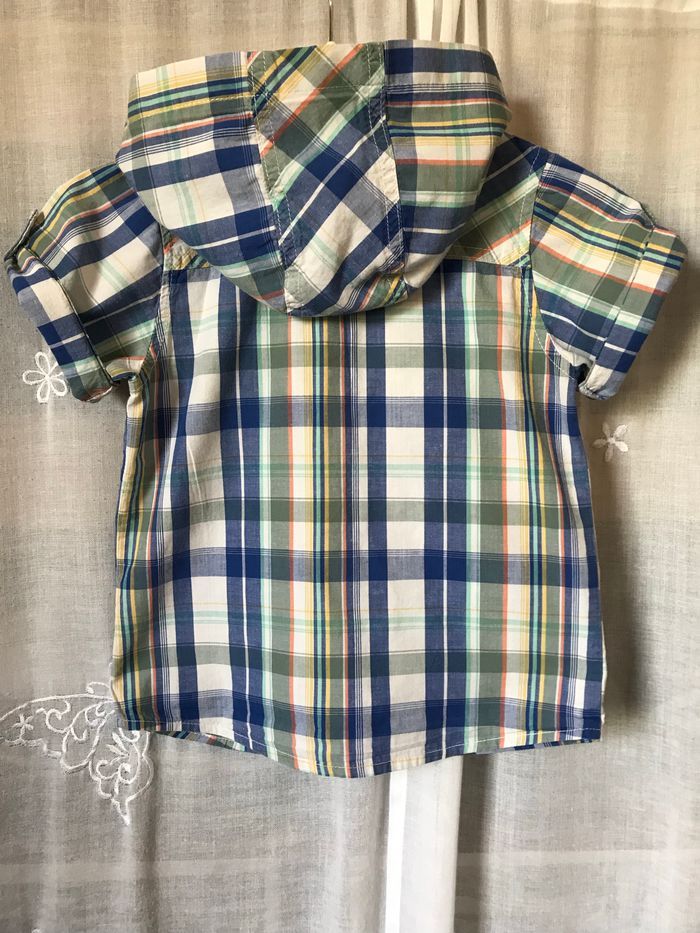 Jolie petite chemise à carreaux écossaise Tons blanc bleu vert Manches courtes Capuche Taille 4 ans 102 cm Columbus