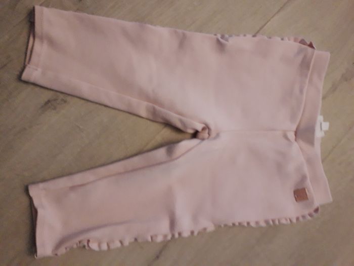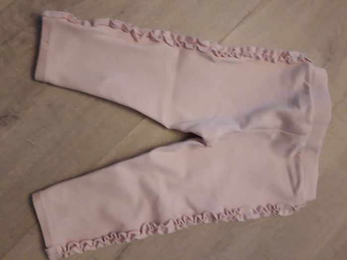 Pantalon rose pale. Legging. Froufrous sur le coté des jambes.
