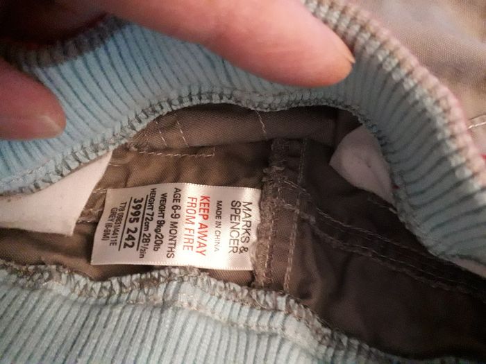 Pantalon a taille et pieds élastique. Beaucoup porté mais n'a pas bougé. Lavé avec lessive pour bébé. Maison non fumeur