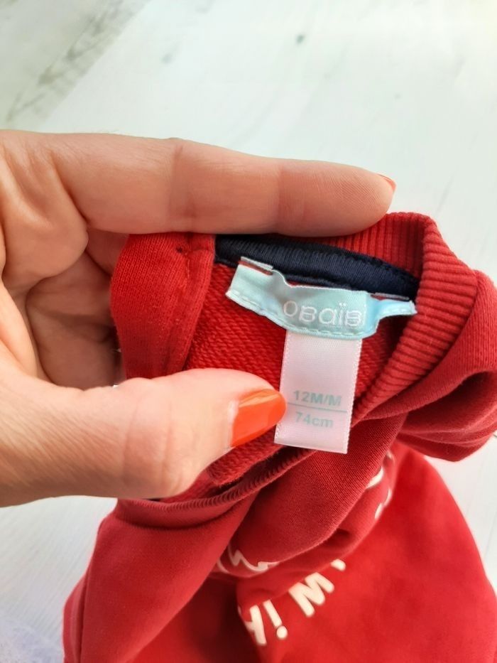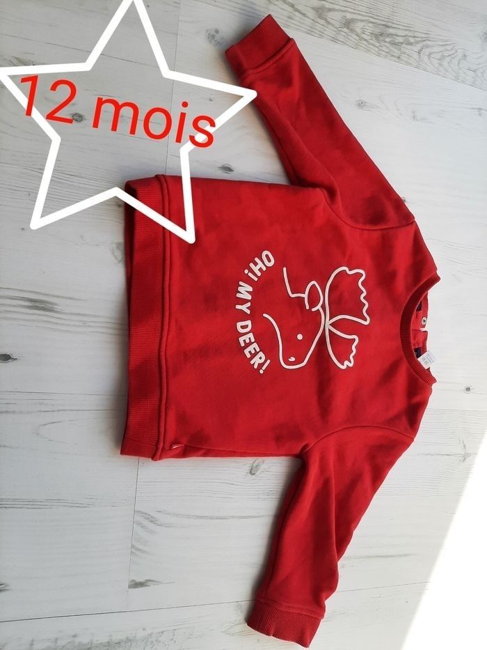 Bonjour, Je vends ce pull rouge taille 12 mois Marque obaïbi. En parfait état.