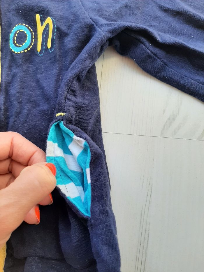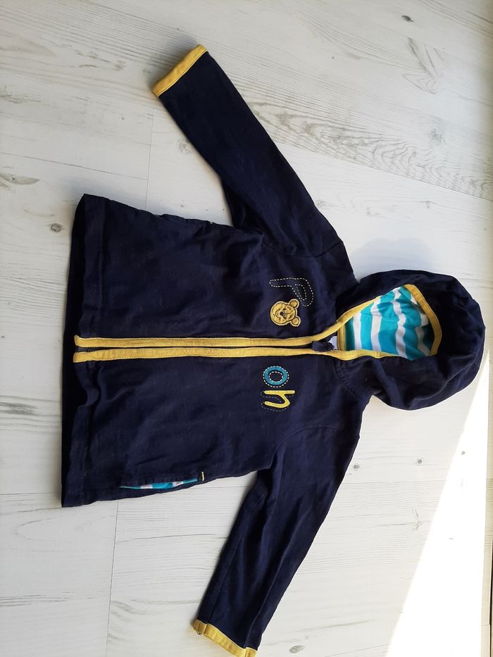 Bonjour, Je vends ce gilet winnie l'ourson en taille 12 mois. Bleu, jaune, blanc... En parfait état.