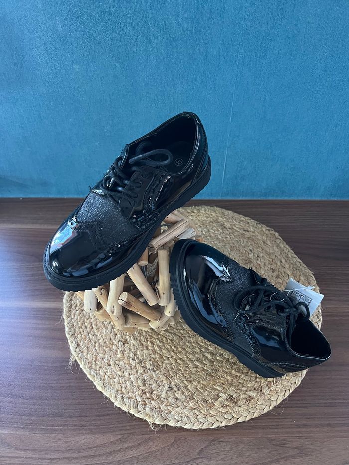 Très jolies Derbies vernies noire , jamais mises car oubliées dans le dressing . Je ne sais plus où je les ai achetées