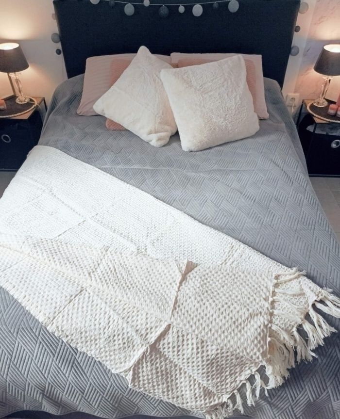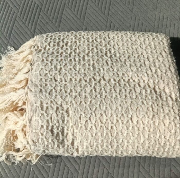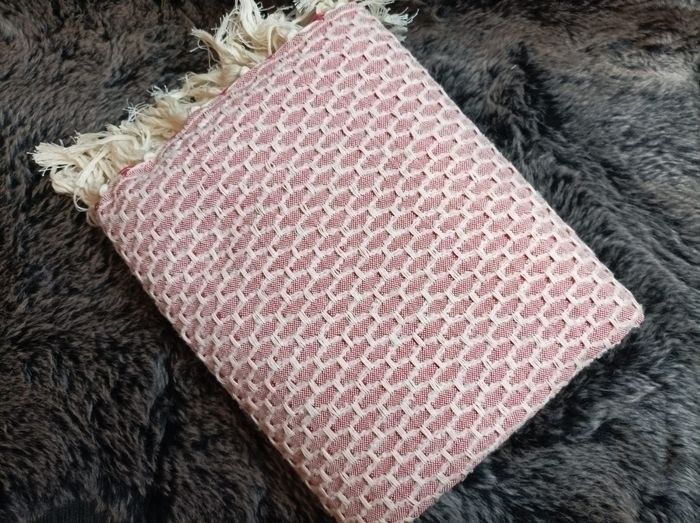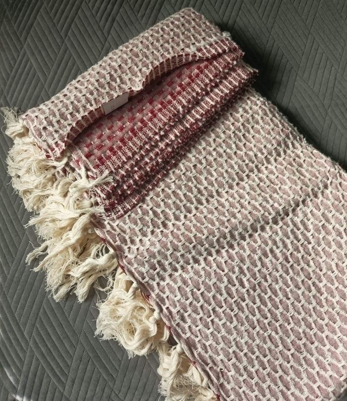 Très jolie plaide couleurs rouge ou terracotta ou bordeaux...de très très bonne qualité 80% laine et 20%coton très jolie tissage alvéolé taille 130x170 envoie rapide et soigné me demandé avant pour voir la disponibilité(15 euros pièce)