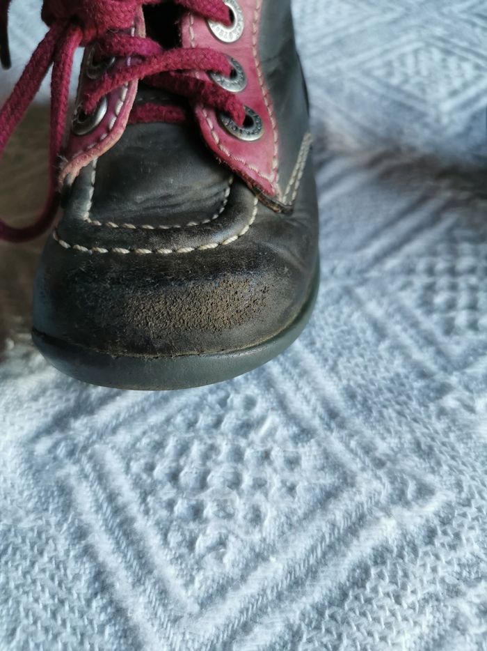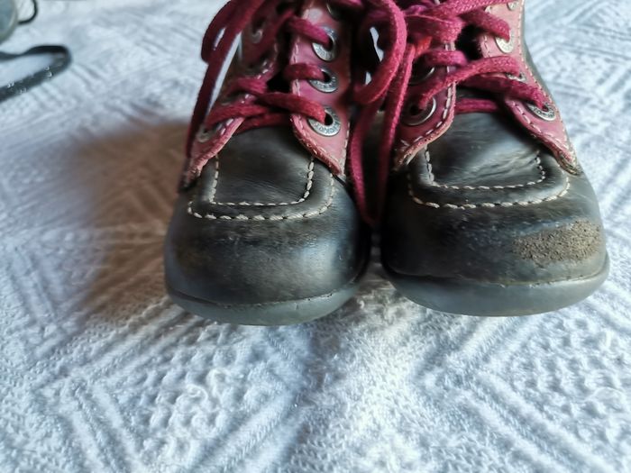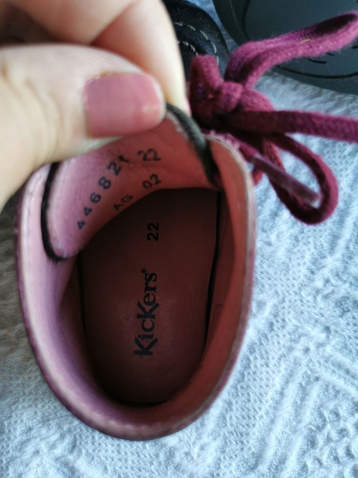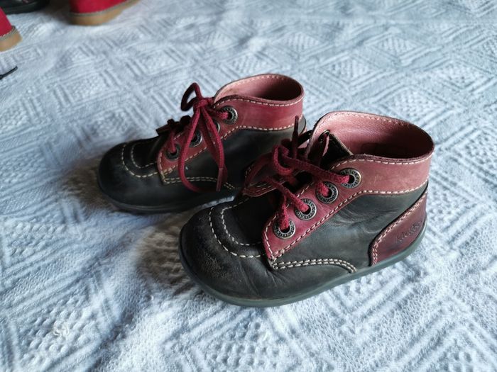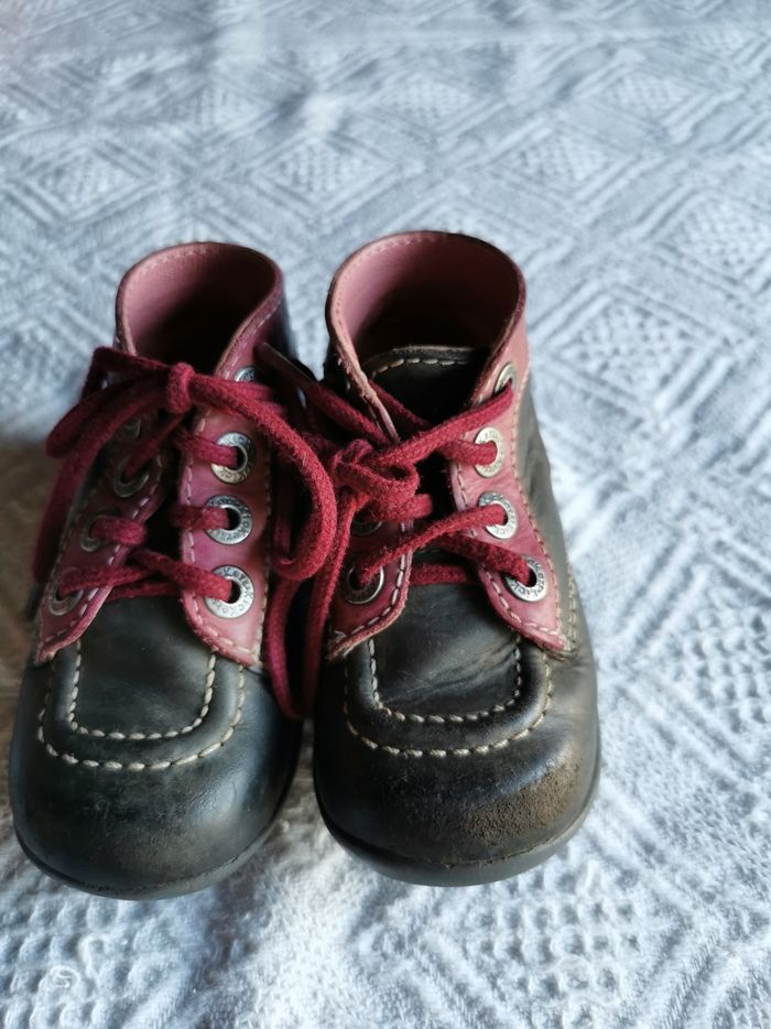 Petits bottillons Marque Kickers. Tout cuir. Rose et gris. Taill 22. En bon état, seulement râpés sur le devant.