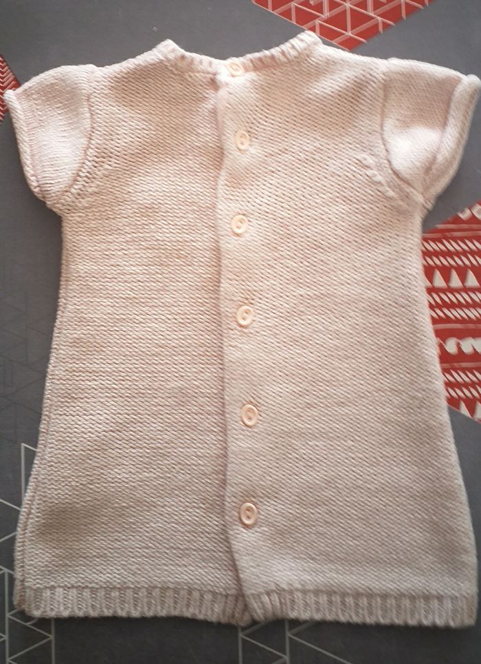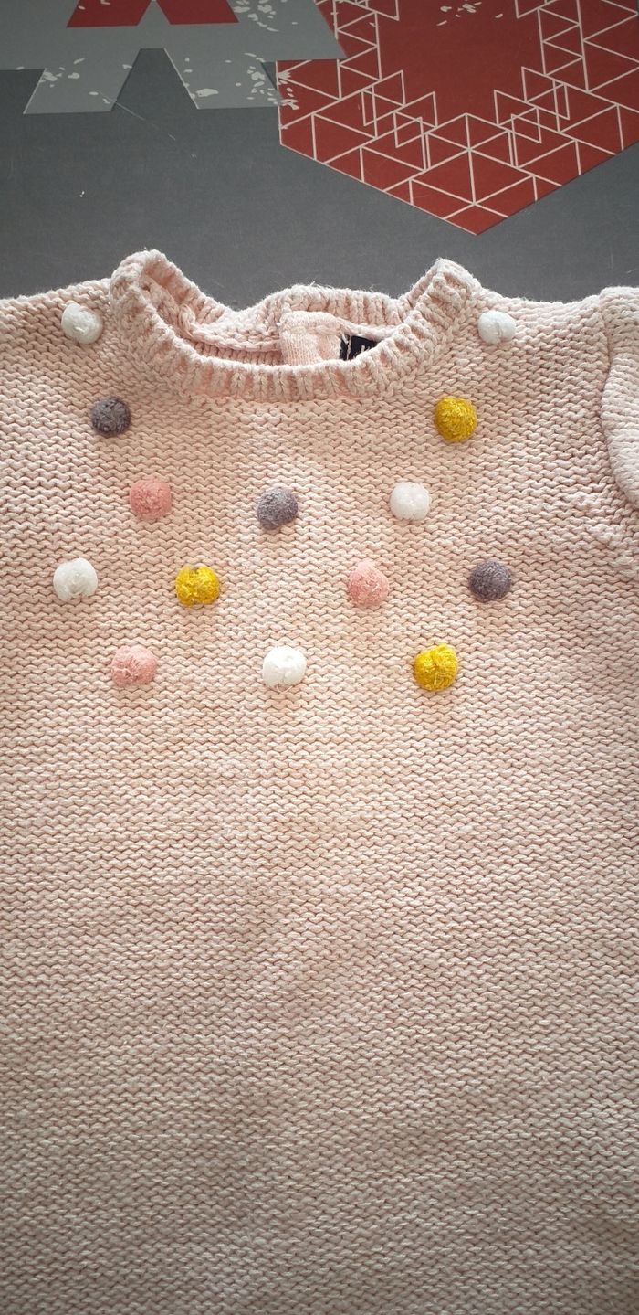 Porté quelques fois. Petite robe manches courtes. Petits pompons sur le devant et fermeture par boutons dans le dos.