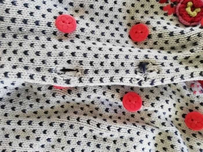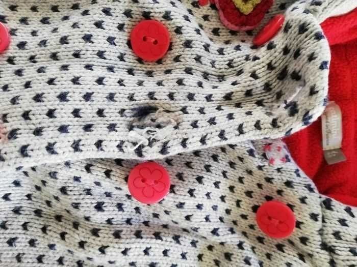 Double polaire Des accrocs au niveau de la boutonnière, les 2 premiers boutons mais quand le manteau est fermé, on ne voit plus les défauts mais hormis ça pas de défaut