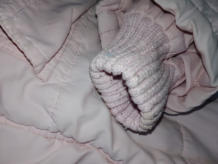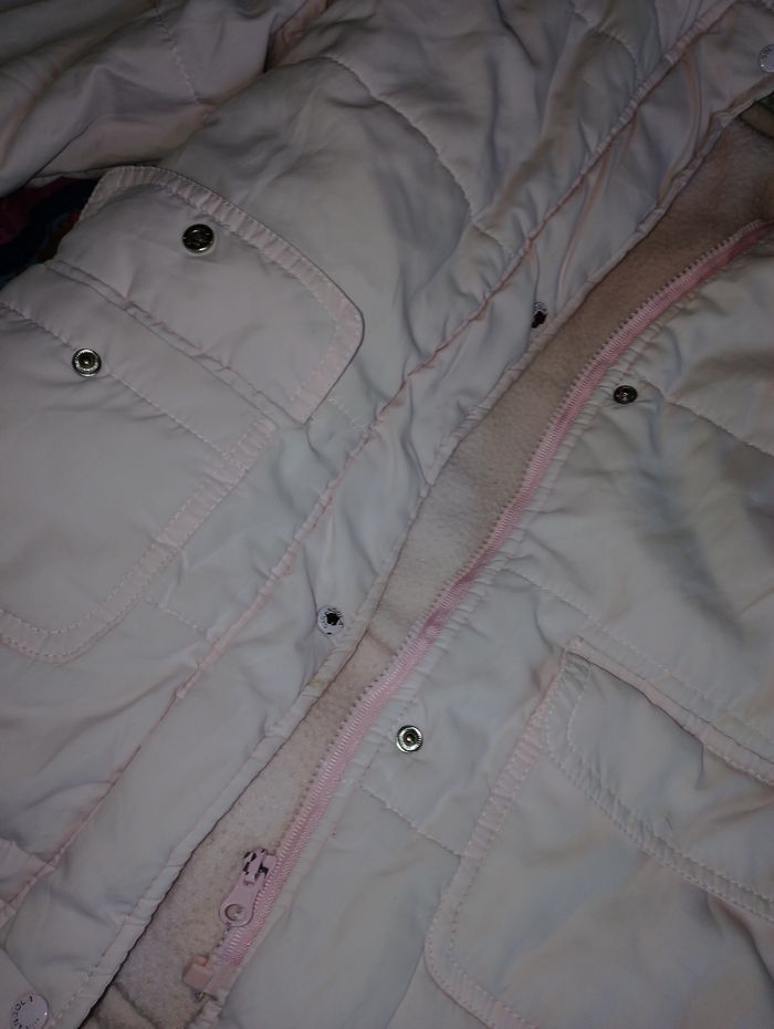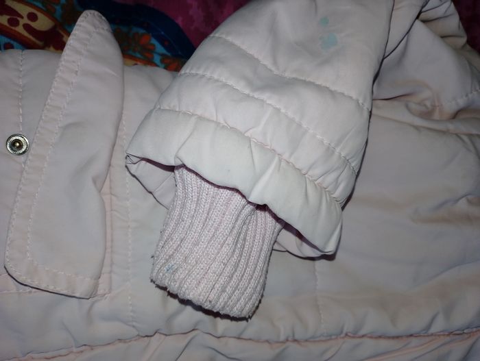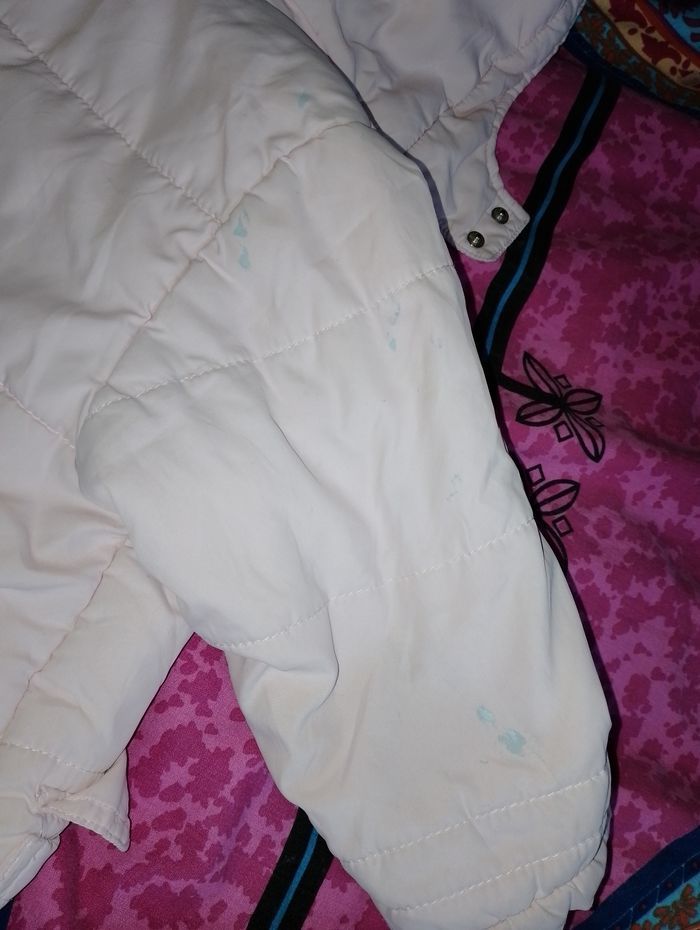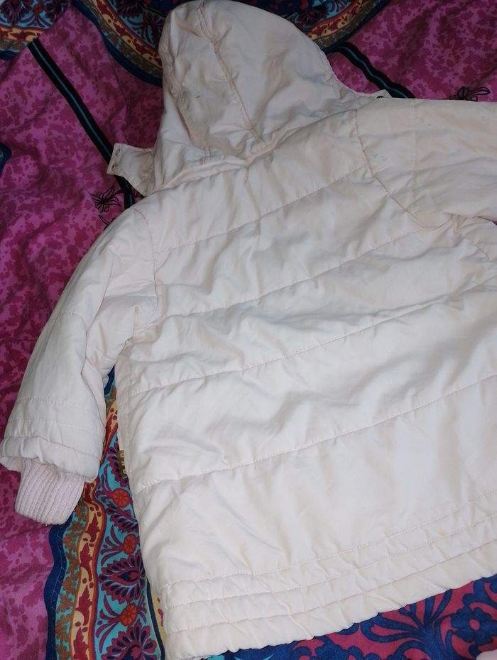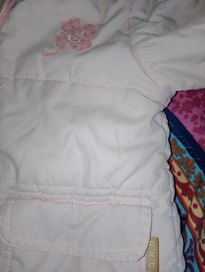 Manteau 12 mois girandola ( giranoola ) Avec 2 poches Capuche amovible Fermeture éclair et pression pour fermer le manteau Poignée élastique (taché) et trace de peinture bleu à l'arrière sur le bras