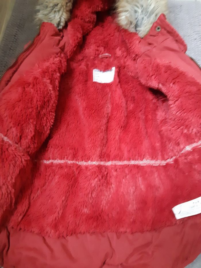 Le manteau reste en très bon état, il est bien fourré, bien chaud et encore bien doux, malgré des petits accros sur une des poches et la poche est légèrement décousue.