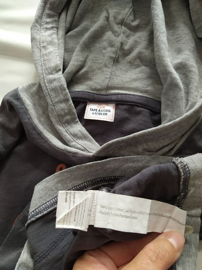 Tee shirt manche longue À capuche 4 ans Tape à l'oeil Gris 100% coton Bon état